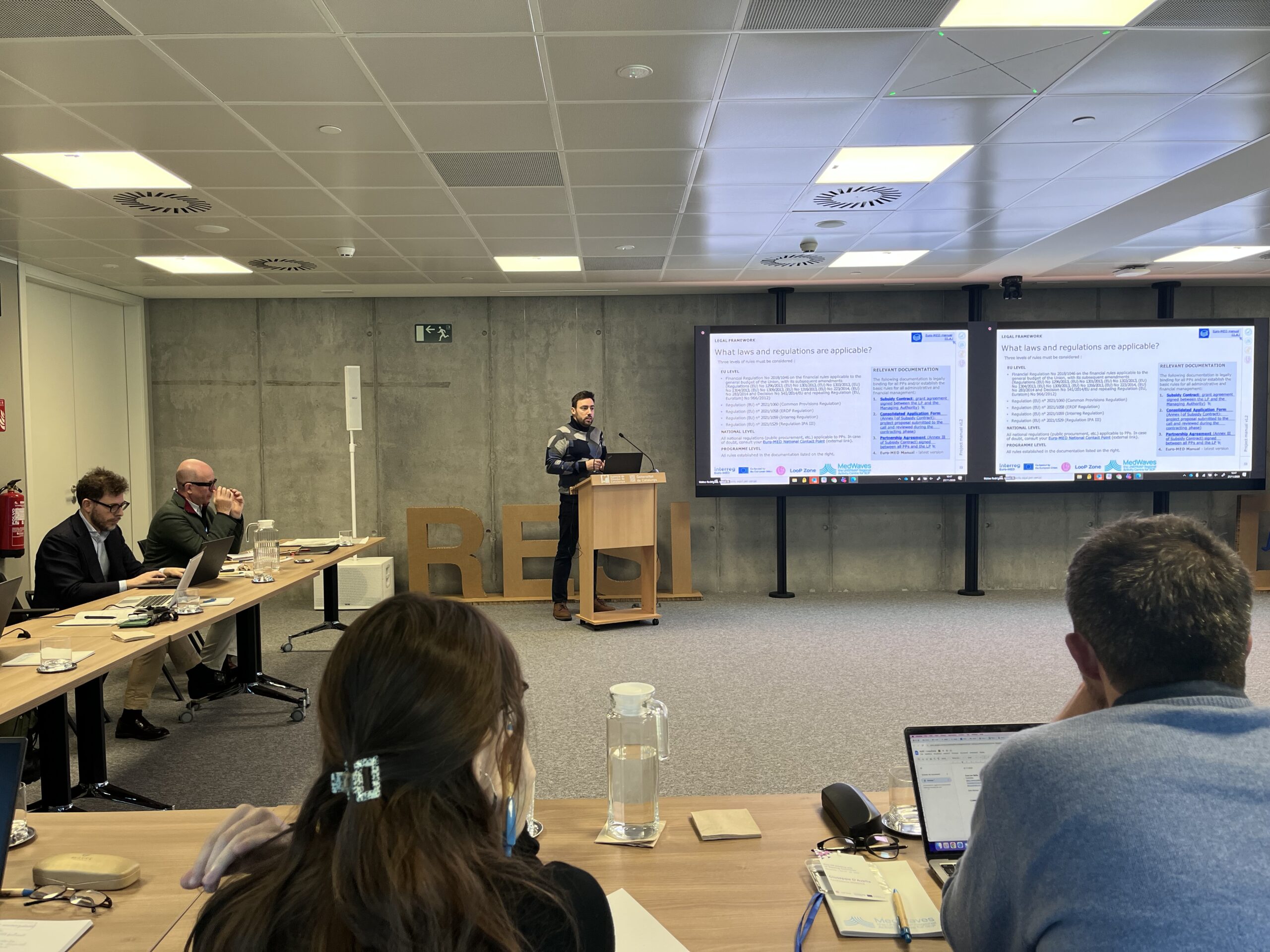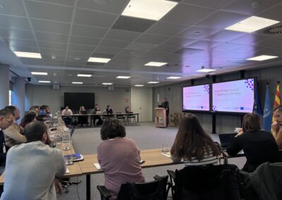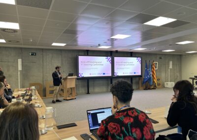 The first day of the meeting set the tone for a collaborative and forward-looking project start. After welcoming remarks by MedWaves Director Jesús Maestro, the consortium received guidance from the Interreg Euro-MED Joint Secretariat, represented by Axel Rodríguez Garrote, followed by insights from the Community4Tourism Thematic Community shared by Josep Rodríguez. The Lead Partner Project Coordination Team Alessandro Miraglia, Ignasi Mateo, Matías Ibáñez Sales, and Núria Manchado Puchol presented the project’s governance structure, coordination requirements, and communication approach. This helped establish clarity, alignment, and a shared understanding of responsibilities among partners. The afternoon sessions focused on the project’s overall vision and operational roadmap. Presentations from MedWaves (Ignasi Mateo), Rezero (Jennifer Berengueras Rollin) and ACR+ (Zuzana Boháčová) introduced the strategy behind the three main Work Packages -Study, Test, Transfer- and how these will guide the work throughout the project’s duration. Although not all partners could join physically in Barcelona, many actively participated online. Their engagement ensured that the full consortium contributed to shaping the project’s direction—and they were proudly included in the project’s “family picture.”