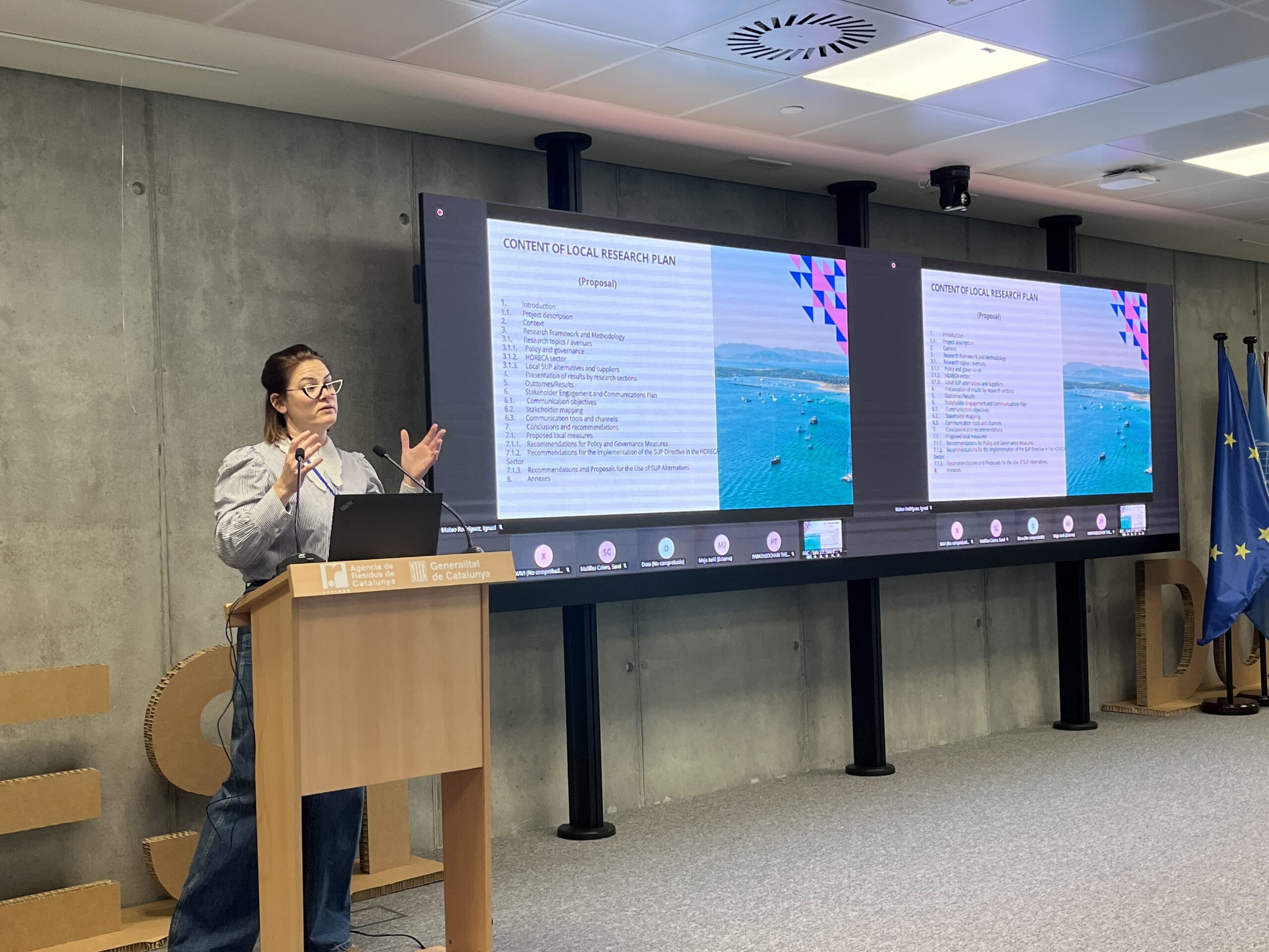 The second day began with a session dedicated to defining the research plans that each pilot implementation partner will develop. Under the guidance of Sunce (Tea Kuzmičić), partners discussed methodologies, data needs, and the steps required to assess plastic use and reduction potential within their respective pilot islands. A key milestone of the day was the introduction of the project’s Advisory Board—a diverse group of Mediterranean experts whose strategic, technical, and policy insights will help ensure the project’s long-term impact. Their role will be essential in connecting LooP Zone’s on-the-ground actions with broader policy frameworks and regional sustainability goals. During the meeting, the consortium heard from the following Advisory Board members: